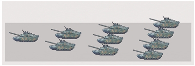 今年參加閱兵的坦克部隊來自北京軍區(qū)第38集團軍。在所有參閱的裝備方隊里,它們將第一個駛過天安門廣場。和其他方隊使用的矩形編隊不同,坦克方隊以箭形編隊前行。這次參閱的坦克為99A式坦克,是99式坦克的改進型,性能與99式坦克相比有本質性的提升。坦克方隊受閱長徑達112.6米,每行駛100米,駕駛員需要調整方向48次才能保證騎線,展現的可謂是“指尖上的舞蹈”。