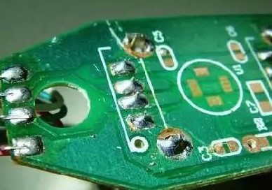 2.PCB板材氧化:PCB板暴露在空氣中時(shí)間過長或者制造過程中出現(xiàn)烘干不良等問題,都會出現(xiàn)氧化現(xiàn)象,對此我們可以選用活性較強(qiáng)的助焊劑,或者用化學(xué)溶劑進(jìn)行蝕刻,如用強(qiáng)酸類溶液適當(dāng)稀釋后擦拭氧化處,此種方法清洗后必須盡快過錫,不然會造成更為嚴(yán)重的氧化。